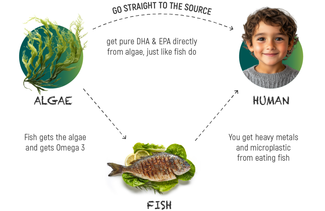 - GO STRAIGHT TO THE SOURCE – get pure DHA & EPA directly from algae, just like fish do.